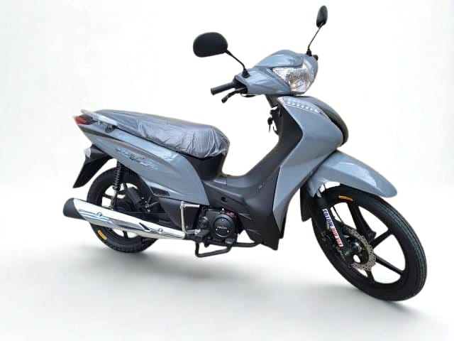 motor monocilíndrico de 123,67 cc, 4 tempos, que gera 8 CV de potência e 9,0 Nm de torque, acoplado a um câmbio de 4 marchas.