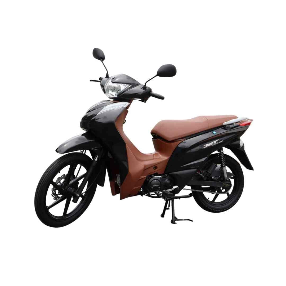motor monocilíndrico de 4 tempos, 123,67 cc, que entrega 8 cv de potência e 9,0 Nm de torque. Possui câmbio de 4 marchas e embreagem semiautomática. Inclui farol em LED com DRL, painel digital, porta-objetos, porta USB, e freio a disco dianteiro com CBS e tambor traseiro. Com tanque de 4,2 litros e peso bruto de 90 kg